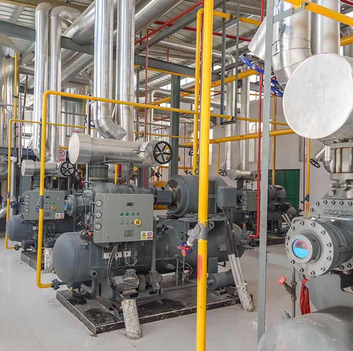 有些氨系統(tǒng)用的車間空調和小型冷庫改造可以采用小型的風冷氟利昂制冷系統(tǒng),制冷系統(tǒng)簡單,故障率低,各個系統(tǒng)相互對立,節(jié)能效果明顯。